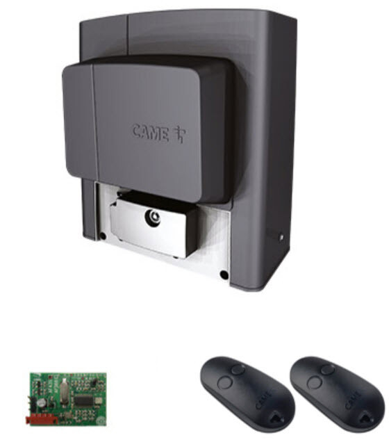 СОСТАВ КОМПЛЕКТА: - BKS12AGS привод 230В со встроенным блоком управления (1 шт), - AF43S плата-радиоприёмник (1 шт), - TOP42FGN брелок-передатчик 2-х канальный с фиксированным кодом (2 шт). ТЕХНИЧЕСКИЕ ХАРАКТЕРИСТИКИ привода BKS12AGS: Относительная стандартная длина подвижной части: 20 м Максимальная масса подвижной части: 1200 кг Класс защиты: IP44 Напряжение электропитания: ~230В 50/60 Гц Напряжение питания двигателя: ~230В, 50/60 Гц Мощность: 380 Вт Толкающее усилие: 850 Н Рабочая скорость: 10, 5 м/мин Интенсивность: 50% Диапазон рабочих температур: -20...+55° C Термозащита двигателя: 150° C ВНИМАНИЕ: указаны предельные значения ширины и массы ворот, которые обратно пропорциональны друг другу. Для окончательного выбора привода, смотрите инструкцию на привод, раздел "Ограничения в использовании".