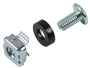 Гайки в наборе имеют квадратную форму и специальные «лапки», прочно фиксирующие их в квадратном отверстии монтажных профилей — это облегчает установку оборудования, исключая необходимость удерживать гайку руками.