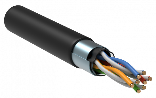 Кабель ITK категории 5е для внешней прокладки 4х парный F/UTP в оболочке LDPE, цвет черный.