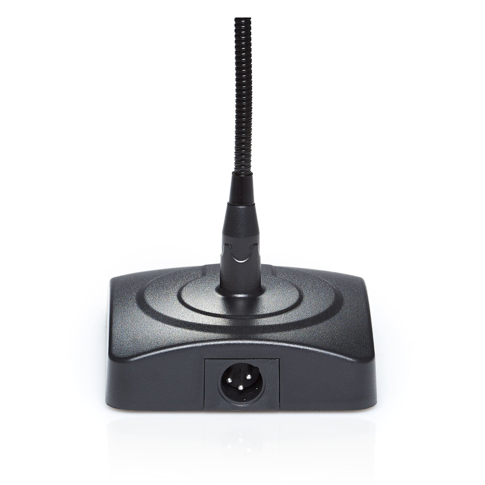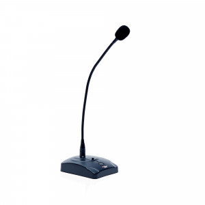 Панель рассчитана на настольное размещение. Гибкий держатель позволяет легко регулировать положение микрофона. Металлическая решётка над мембраной защищает динамическую головку от механических повреждений. В основании микрофона расположено светодиодное кольцо, сигнализирующее о его активном состоянии.