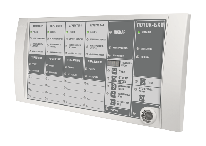 Обеспечивает световую и звуковую индикацию состояния станции пожаротушения, выполненной на основе блока "Поток-3Н" и дистанционное управление этим блоком.