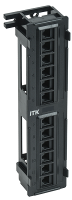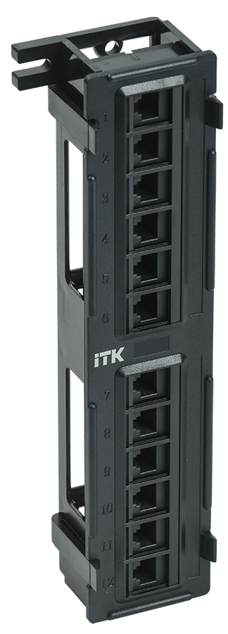 Компания ITK предлагает патч-панели для настенного монтажа и установки в 19” стойки, в исполнении UTP/FTP, с количеством портов 12, 24, 25, 48, 50, категорий 3 (телефонные), 5E, 6, 6A — как в экранированном, так и неэкранированном исполнении.