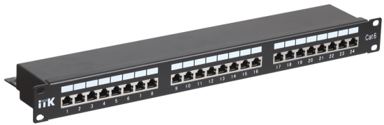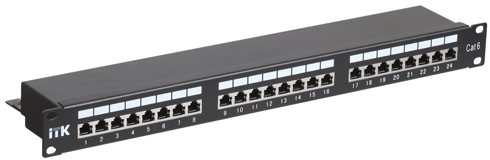 Компания ITK предлагает патч-панели для настенного монтажа и установки в 19” стойки, в исполнении UTP/FTP, с количеством портов 12, 24, 25, 48, 50, категорий 3 (телефонные), 5E, 6, 6A — как в экранированном, так и неэкранированном исполнении.
