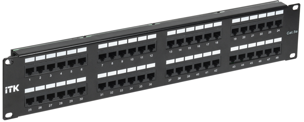 Компания ITK предлагает патч-панели для настенного монтажа и установки в 19” стойки, в исполнении UTP/FTP, с количеством портов 12, 24, 25, 48, 50, категорий 3 (телефонные), 5E, 6, 6A — как в экранированном, так и неэкранированном исполнении.