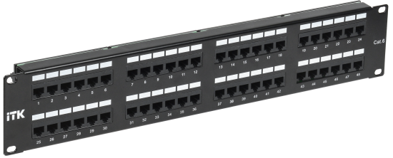 Компания ITK предлагает патч-панели для настенного монтажа и установки в 19” стойки, в исполнении UTP/FTP, с количеством портов 12, 24, 25, 48, 50, категорий 3 (телефонные), 5E, 6, 6A — как в экранированном, так и неэкранированном исполнении.
