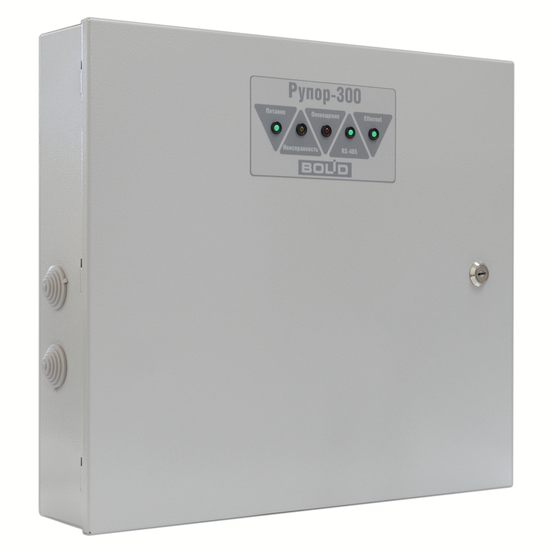 Блок речевого оповещения "Рупор-300" предназначен для воспроизведения записанных в блок или трансляции внешних речевых сообщений о действиях, направленных на обеспечение безопасности и оповещения при возникновении пожара и других чрезвычайных ситуаций. Блок может работать только в составе ИСО "Орион".