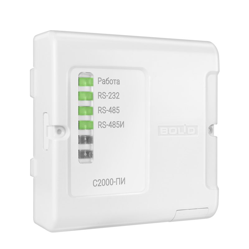 "С2000-ПИ" предназначен для гальванической изоляции и взаимного преобразования сигналов интерфейса RS-232 и сигналов двухпроводного магистрального интерфейса RS-485.