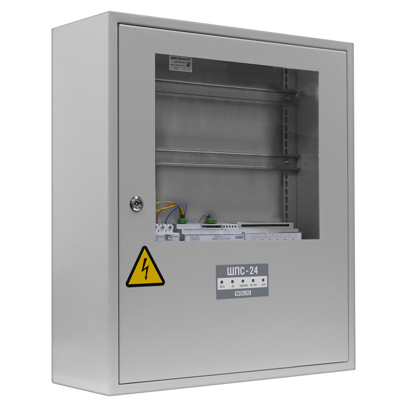 Основное отличие от предыдущих исполнений: увеличенный корпус для установки приборов и двух аккумуляторных батарей ёмкостью 40 А·ч, увеличенная мощность встроенного модуля источника питания. Данные исполнения ШПС-24 имеют две изолированные линии интерфейса RS-485 для подключения внешних устройств с учетом требований СП 484.1311500.2020.