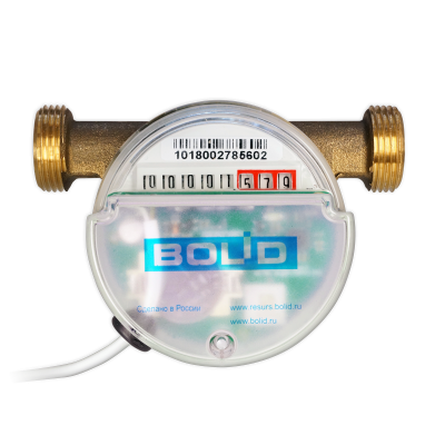 СВК-15-3-2-Б проводной универсальный счётчик холодной и горячей воды СВК 15-3-2 1/2" (Ду=15, L=110 мм) с модулем Болид "С2000-АСР1", сгонами и обратным клапаном. Счётчик предназначен для измерения объёма воды, протекающей по трубопроводу, и передачи показаний по ДПЛС в АСКУЭ "Ресурс". Межповерочный интервал - 6 лет.