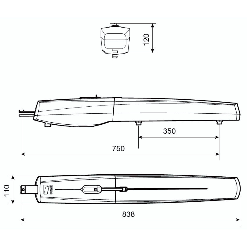 ОСОБЕННОСТИ: - Коническая зубчатая передача и новый червяк обеспечивают более плавный ход и вместе с тем еще большую мощность. - Рекордно низкий уровень шума. - Постоянное движение и линейное замедление. ТЕХНИЧЕСКИЕ ХАРАКТЕРИСТИКИ: Класс защиты (IP) 44 Напряжение электропитания (В - 50/60 Гц) ~230 В Электропитание мотора (В) =24 Потребляемая мощность в режиме ожидания (Вт) 7 Потребление в режиме ожидания с модулем RGP1 (Вт) 0, 5 Макс. мощность (Вт) 120 Интенсивность использования (%) 50 Время открывания на 90° (с) 15 Диапазон рабочих температур: -20 — +55°C Класс изоляции: 3 Время открывания на 90°: 15* Передаточное отношение (i) 1/36 Толкающее усилие: 400 - 2000 H Масса: 5, 5 кг ВНИМАНИЕ: указаны предельные значения ширины и массы ворот, которые обратно пропорциональны друг другу. Для окончательного выбора привода, смотрите инструкцию на привод, раздел "Ограничения в использовании".